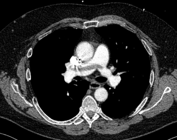CT angiography of the chest with intravenous contrast was performed.
